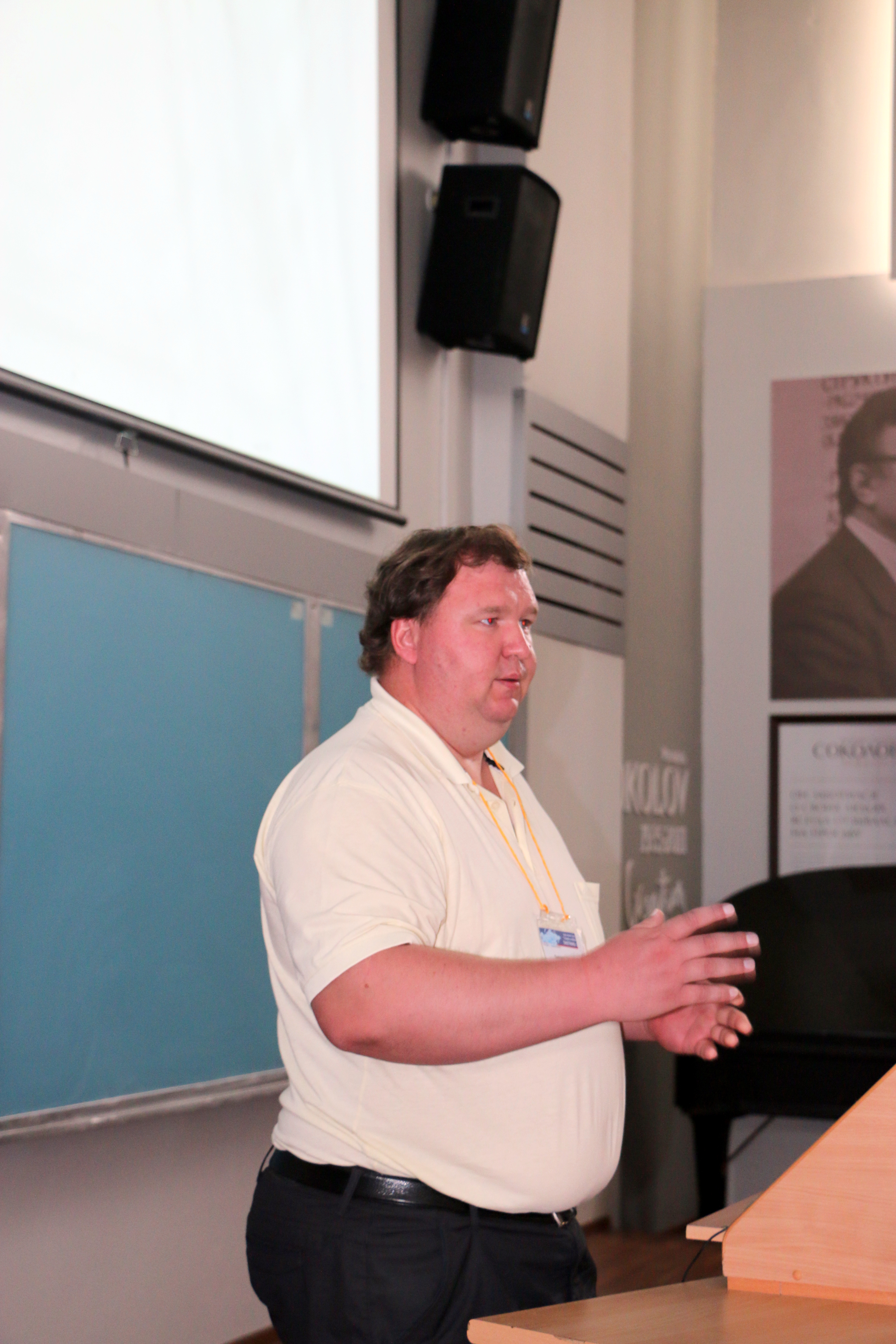 С.Н. Варнаков, старший научный сотрудник лаборатории физики магнитных явлений Института физики им. Л.В. Киренского Сибирского отделения Российской академии наук (ИФ СО РАН), с докладом на Евро-Азиатском симпозиуме «Прогресс в магнетизме» (EASTMAG-2016), организованном и проведенном в Красноярске в августе 2016 года.