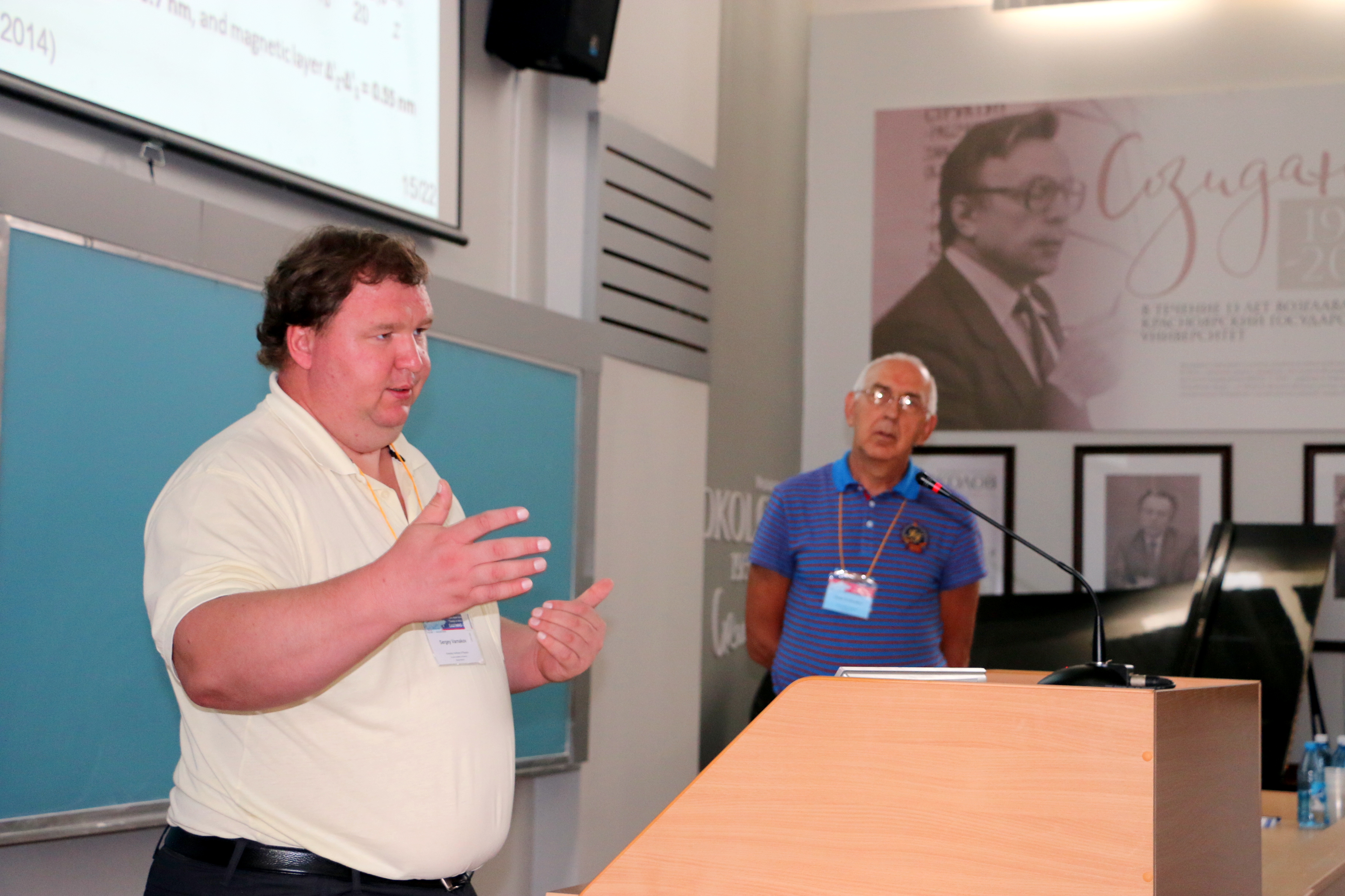 С.Н. Варнаков (слева) и С.Г. Овчинников, сотрудники Института физики им. Л.В. Киренского Сибирского отделения Российской академии наук (ИФ СО РАН), на Евро-Азиатском симпозиуме «Прогресс в магнетизме» (EASTMAG-2016), организованном и проведенном в Красноярске 15-19 августа 2016 года.