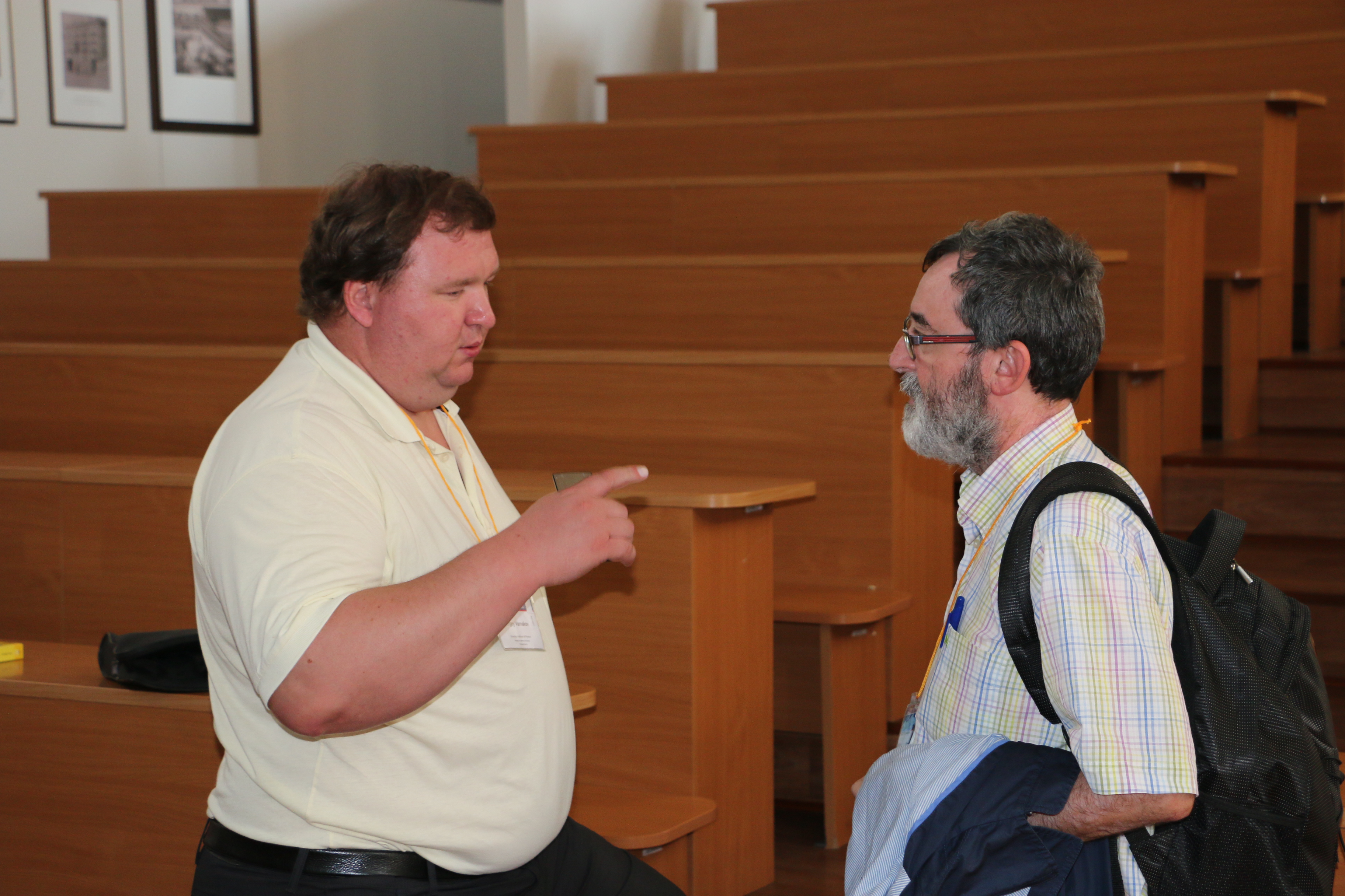 Сергей Варнаков, старший научный сотрудник лаборатории физики магнитных явлений Института физики СО РАН (слева) и Хавьер Рубин, профессор Университета Сарагосы (Испания) на научном форуме EASTMAG-2016, Красноярск.