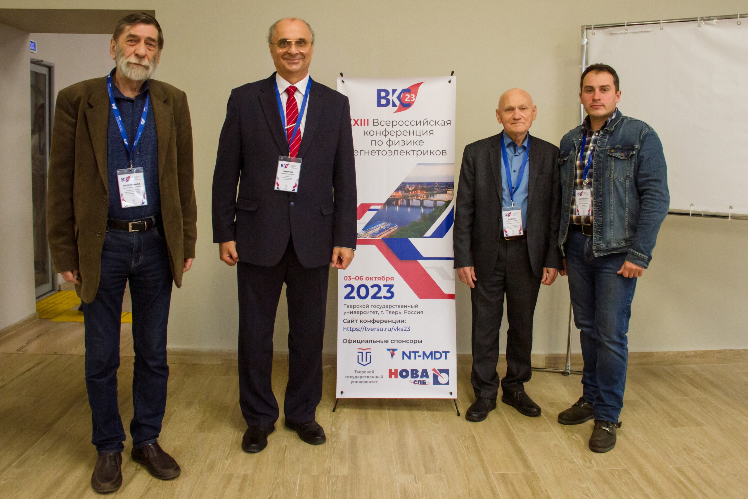 Октябрь 2023 года. Профессор Флёров Игорь Николаевич (второй справа), главный научный сотрудник лаборатории кристаллофизики Института физики им. Л.В. Киренского Сибирского отделения Российской академии наук, на Всероссийской конференции по физике сегнетоэлектриков (ВКС-23) в Твери с организаторами и участниками конференции.