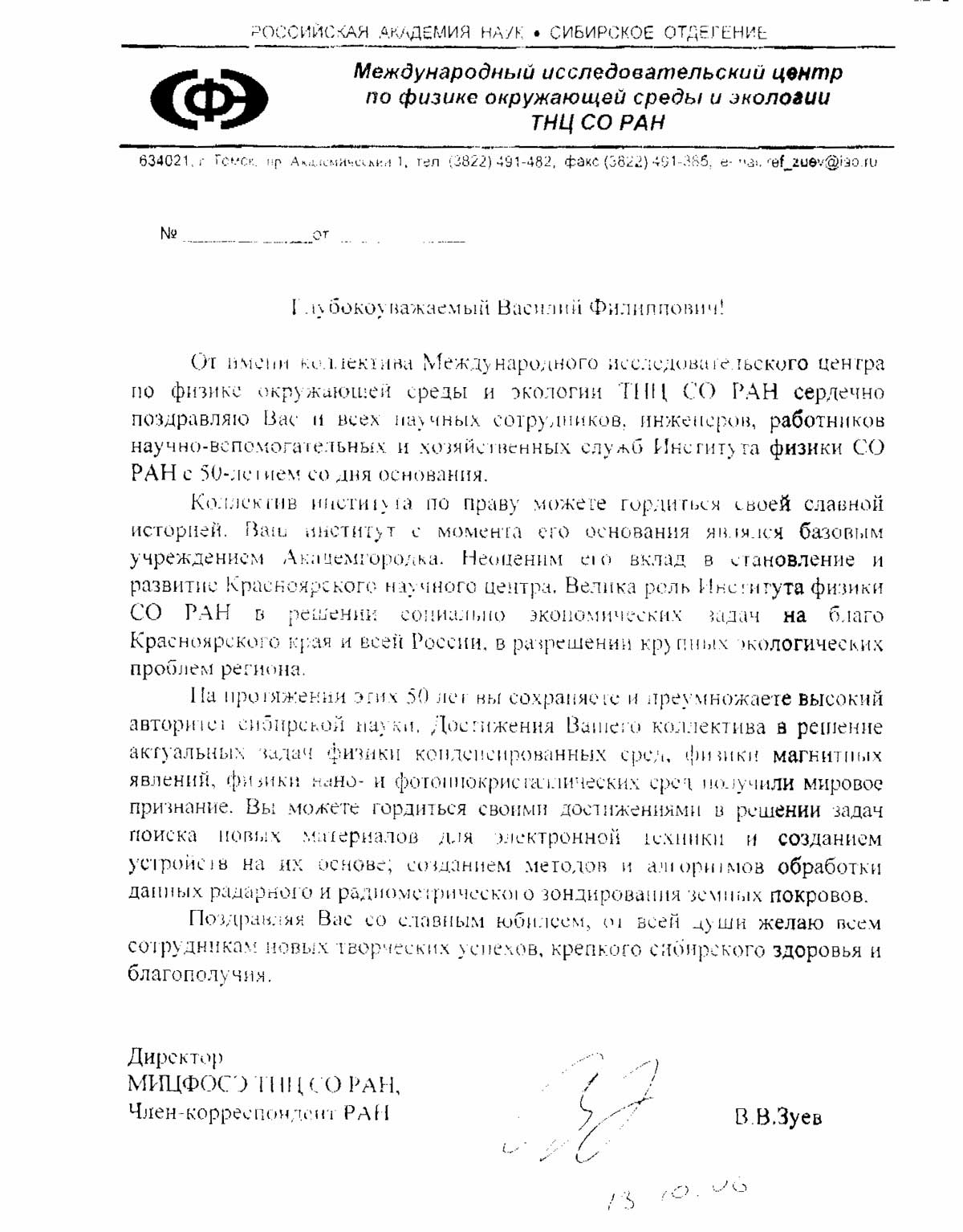 Вы здесь: Главная / Документы / Поздравления с 50-летием Института / Международный исследовательский центр по физике окружающей среды и экологии ТНЦ СО РАН