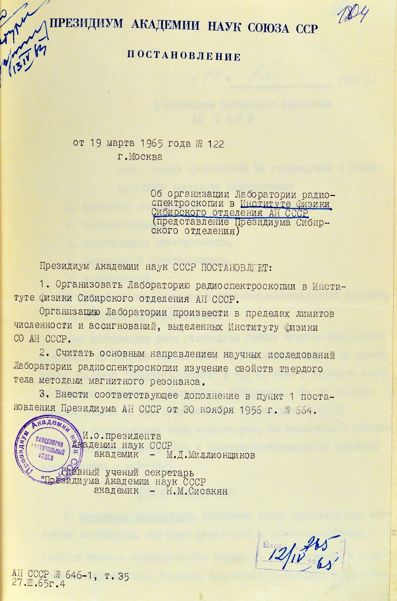 Вы здесь: Главная / Документы / Из архива Института физики / Постановления об организации лабораторий / Об организации лаборатории радиоспектроскопии