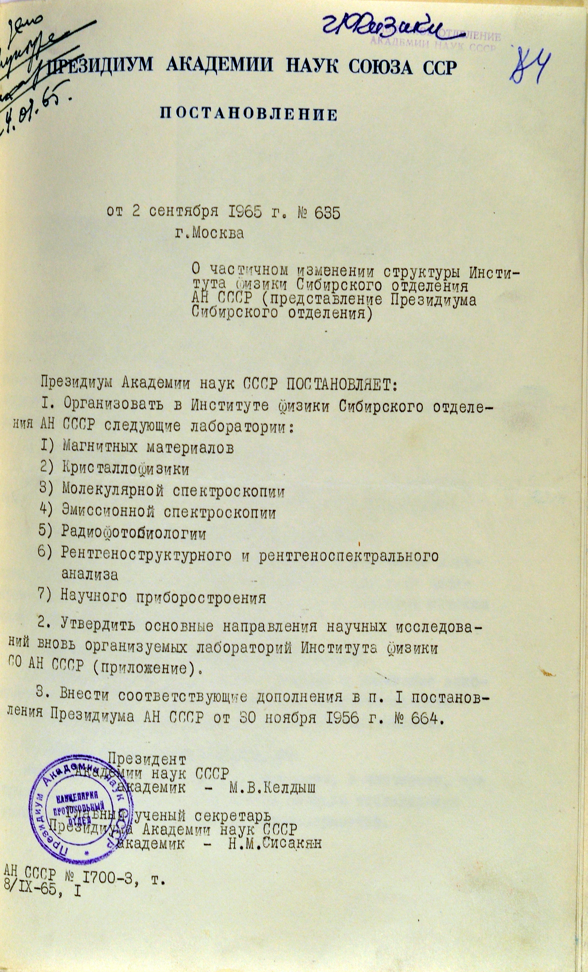Вы здесь: Главная / Документы / Из архива Института физики / Постановления об организации лабораторий / Постановление об организации лабораторий