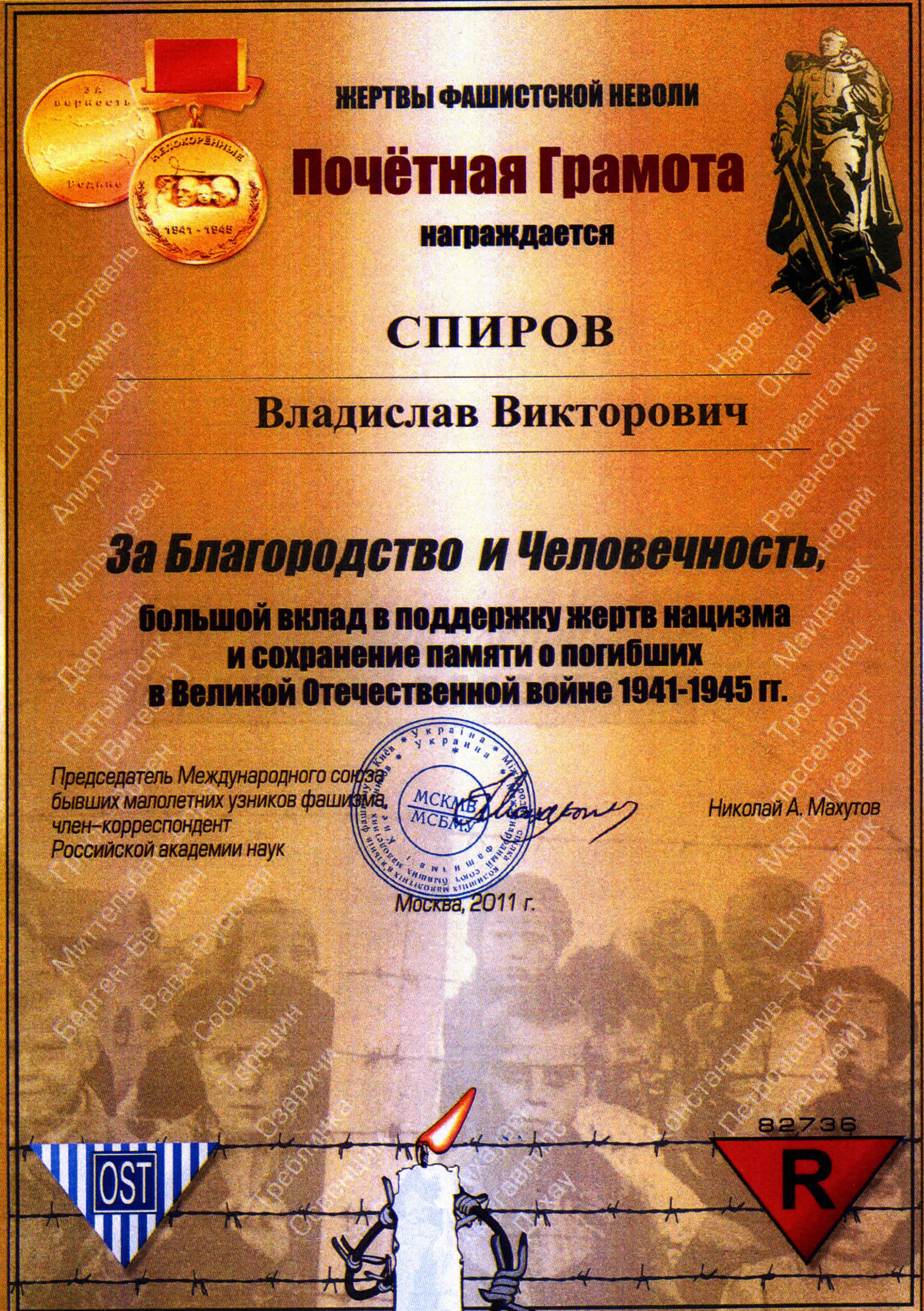 Вы здесь: Главная / Документы / doc / Почётная грамота Спирову В.В.