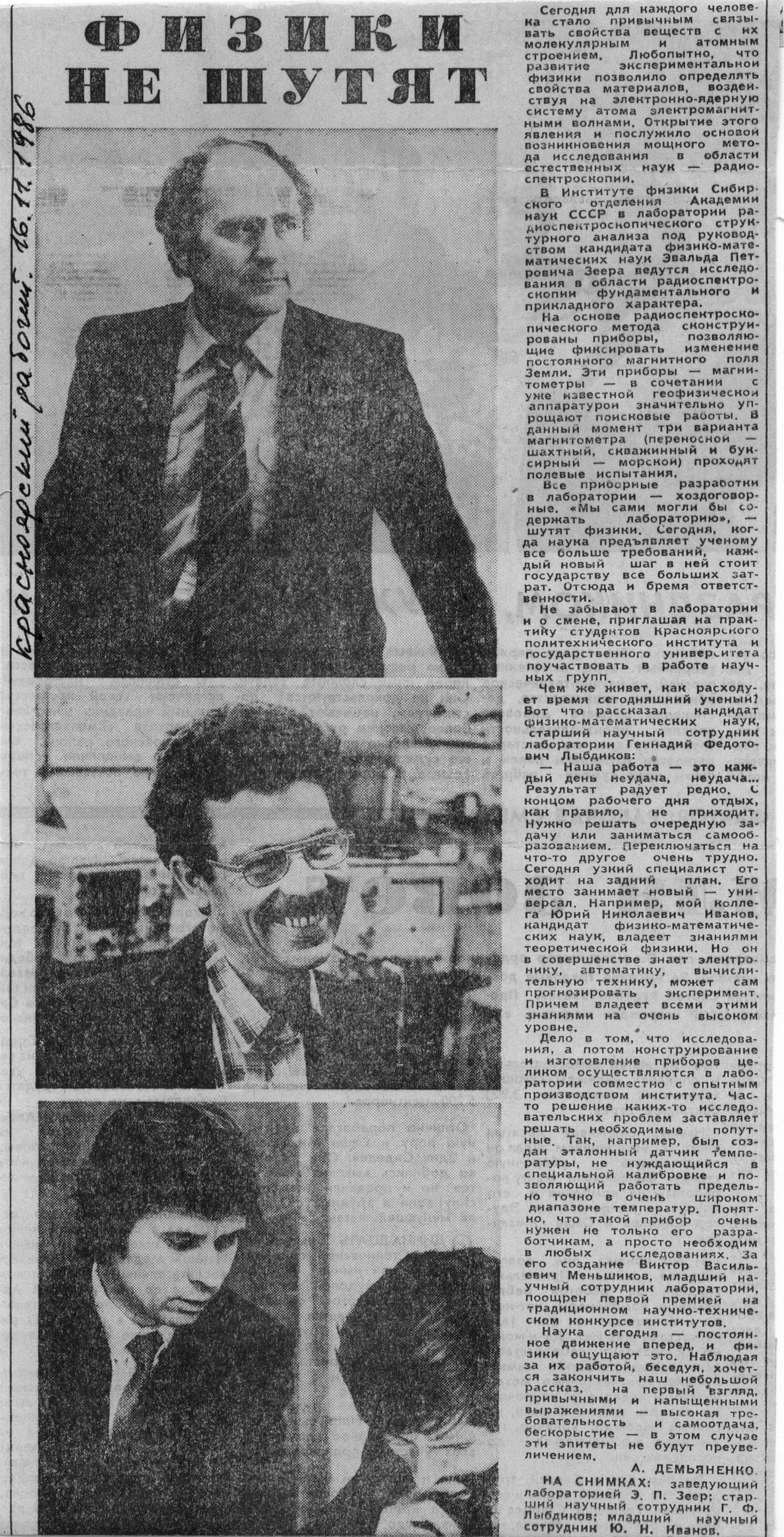 Статья в газете "Красноярский рабочий", 16.11.1986 г.