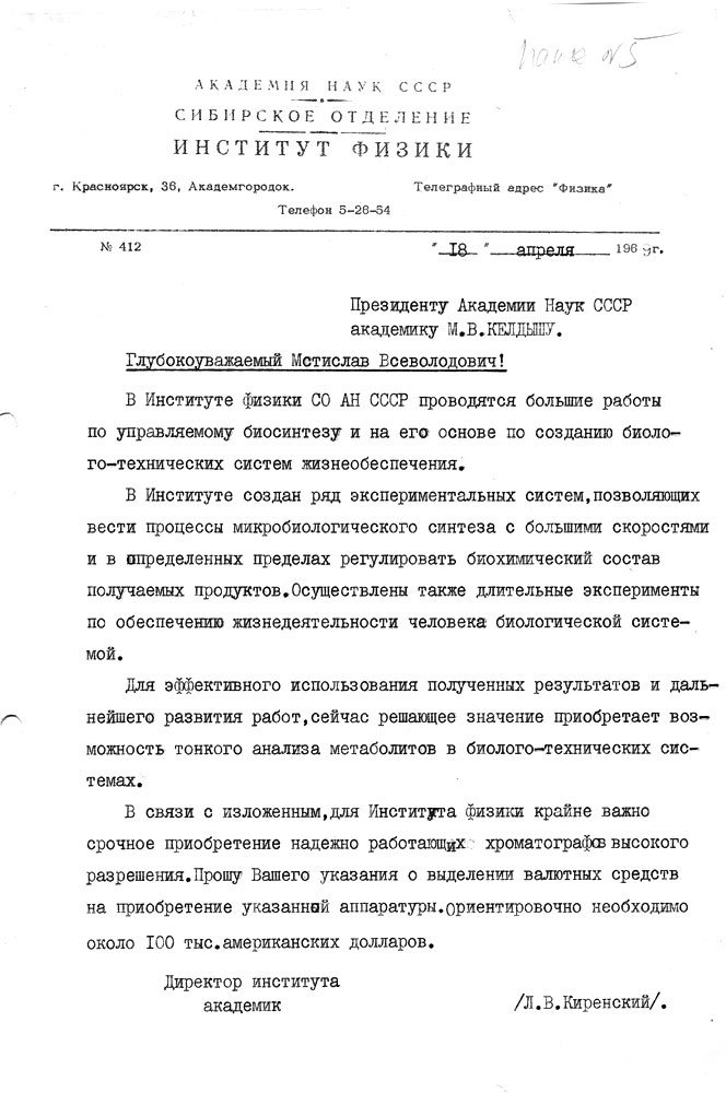 Вы здесь: Главная / Документы / Переписка Л. В. Киренского / Письма Л. В. Киренского / Президенту АН СССР М. В. Келдышу