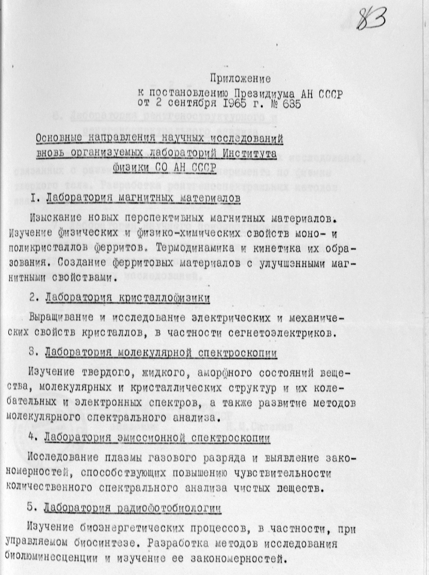 основные направления научных исследований (IX 1965)