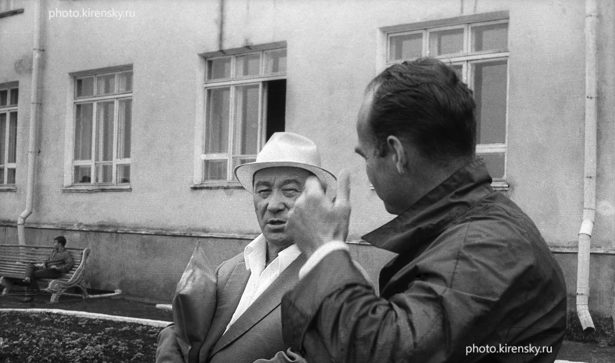 1968 год. Академик Л.В. Киренский, директор Института физики Сибирского отделения Академии наук СССР, у здания Иркутского государственного педагогического института во время работы первого в СССР Международного симпозиума (коллоквиума) по физике магнитных пленок. Симпозиум был подготовлен Институтом физики совместно с Иркутским пединститутом, и проведен в Иркутске, поскольку Красноярск в то время был закрытым городом.