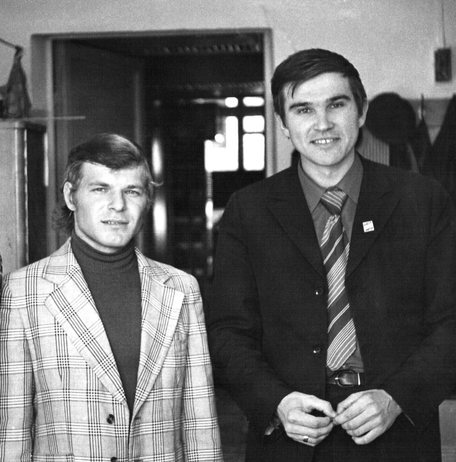 9 октября 1975 года. Сотрудники лаборатории высокочастотных и импульсных свойств тонких магнитных пленок Института физики им. Л.В. Киренского Сибирского отделения Академии наук СССР (ИФ СО АН СССР) Беляев Б.А. (слева) и Тюрнев В.В. Красноярск.