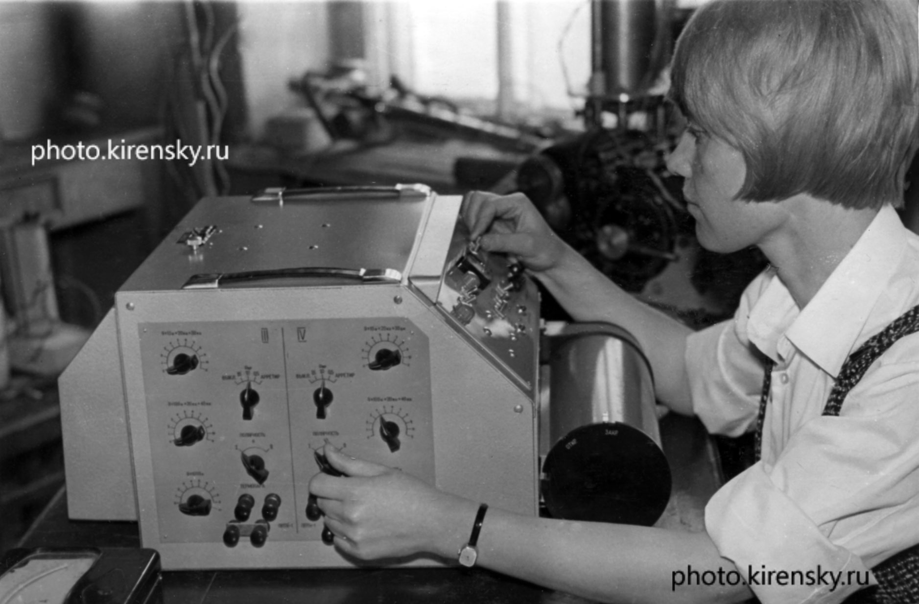 1965 год. Одно из направлений исследований, проводимых в лаборатории кристаллофизики Института физики Сибирского отделения Академии наук СССР (ИФ СО АН СССР) (СО АН СССР с 1991 года СО РАН), было связано с ростом новых галоидных перовскитоподобных кристаллов и поиском в них фазовых переходов различной физической природы. На снимке сотрудник лаборатории кристаллофизики Безносикова Н.В., которая занималась изучением фазовых переходов методом дифференциального термического анализа (ДТА). Красноярск.