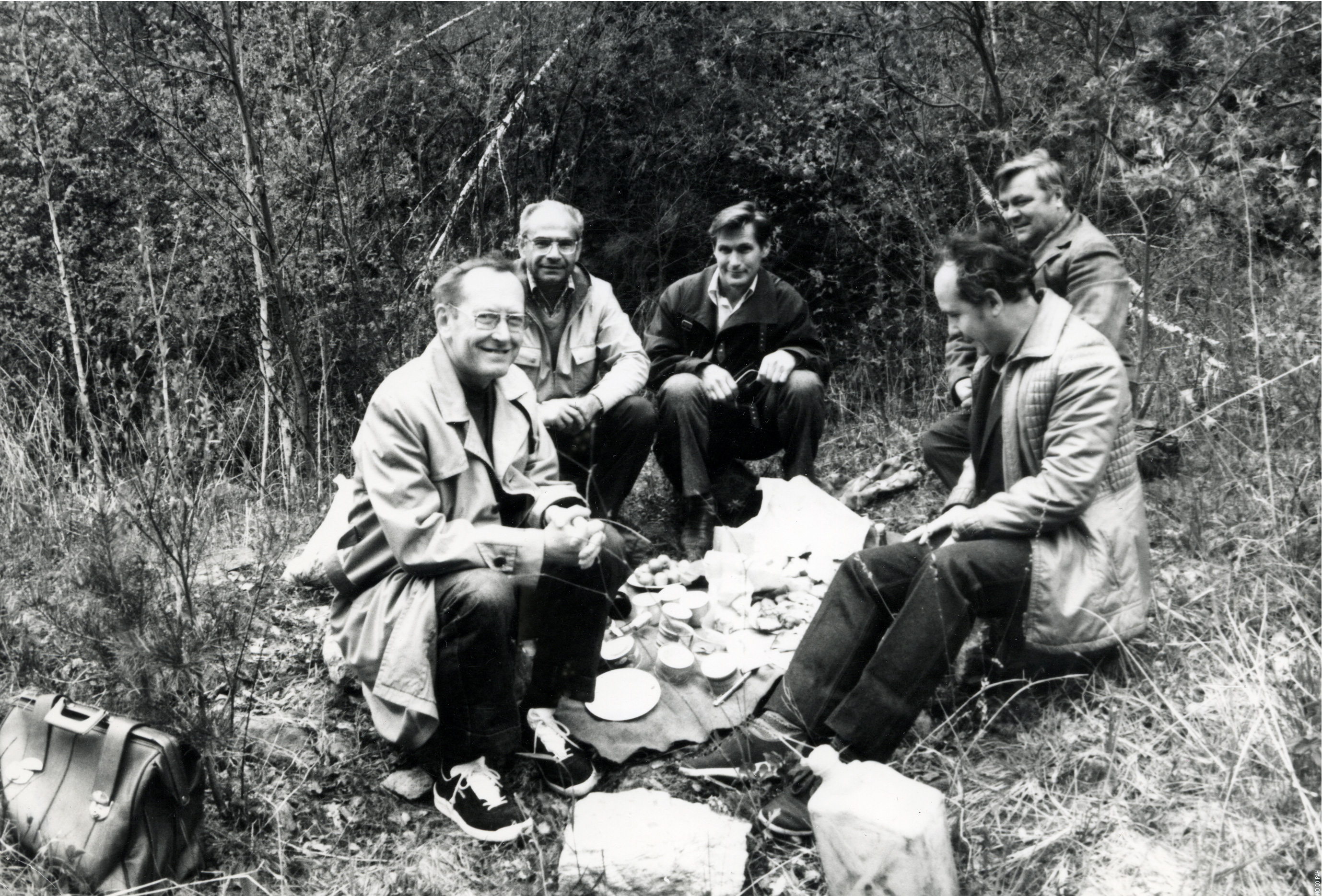 Член-корреспондент К.С. Александров (слева), директор Института физики им. Л.В. Киренского Сибирского отделения Академии наук СССР (ИФ СО АН СССР), во время поездки на Саяно-Шушунскую ГЭС с гостями института. Май 1983 года.