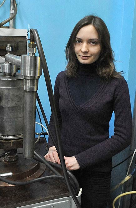 Гончарова У. А. Установка для синтеза фуллеренов, фото 2011 года.