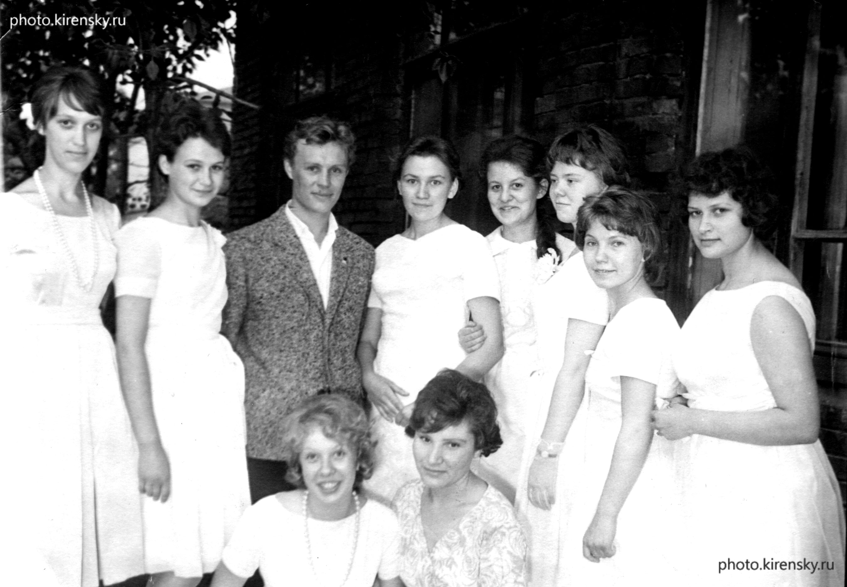 Хрусталев Борис Петрович, учитель физики 11-ой школы города Красноярска, среди выпускниц физико-математического класса школы в 1964 году.