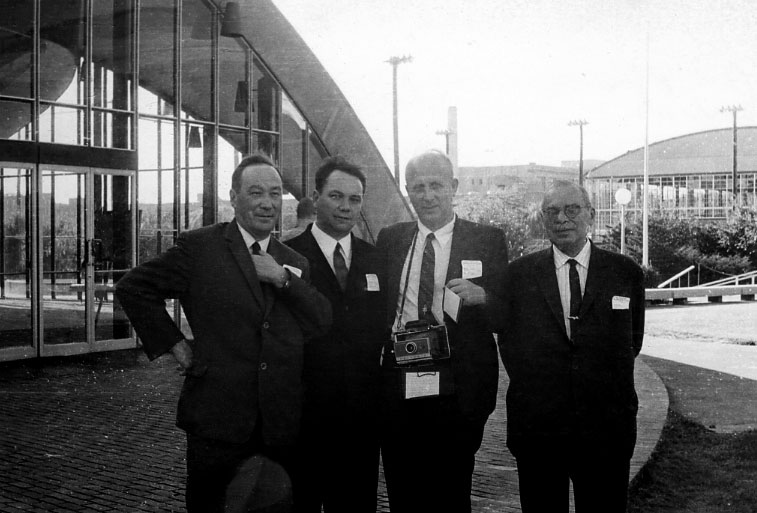 В 1966 году в городе Йена в Германии проводился второй Международный симпозиум по тонким магнитным пленкам. Участники симпозиума, слева направо: академик Л.В. Киренский (организатор и первый директор Института физики Сибирского отделения Академии наук СССР), его ученик В.А. Буравихин , ?, и профессор Е.И. Кондорский ( заведующий кафедрой магнетизма Московского государственного университета (МГУ). (Поскольку пленочное состояние вещества в те годы привлекало не только внимание исследователей, но и решительно вторгалось в технику, был создан Интернациональный организационный комитет по тонким магнитным пленкам под председательством профессора Л. Валенты. По решению комитета (начиная с 1964 года) такие Международные симпозиумы проводились каждые два года. Первый был проведен в 1964 году в ......, а второй в 1966 году в городе Йена в Германской Демократической Республике).