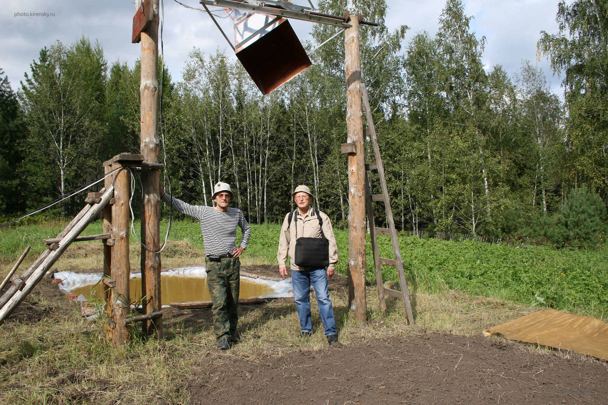 Миронов Валерий Леонидович, член-корреспондент РАН, главный научный сотрудник лаборатории радиофизики дистанционного зондирования Института физики им. Л. В. Киренского Сибирского отделения Российской академии наук (ИФ СО РАН), с сотрудником Института леса на базе Института леса Сибирского отделения Российской академии наук. Снимок 2018 года.