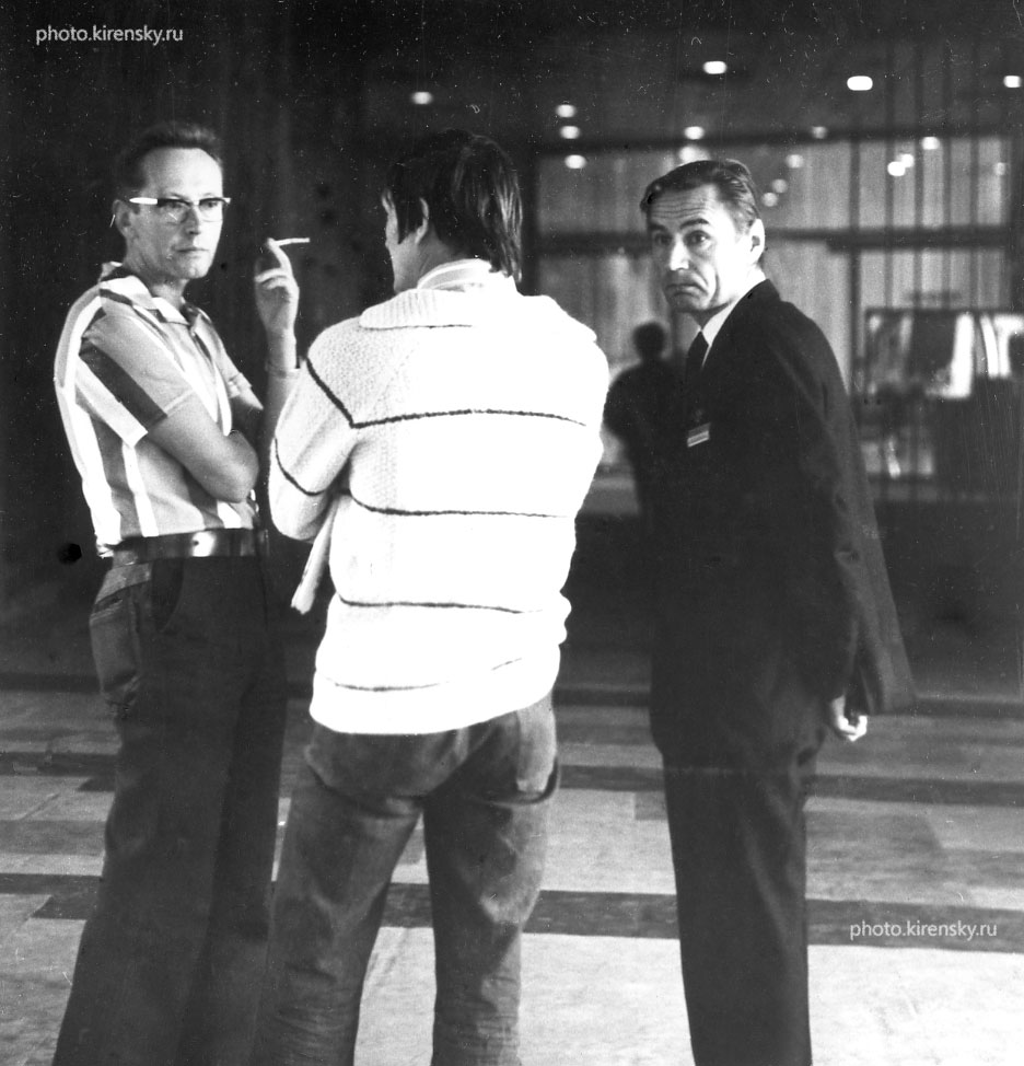 1976 год, 29 августа. Александров Кирилл Сергеевич (слева), член-корреспондент Академии наук СССР, заместитель директора по научной работе Института физики им. Л.В. Киренского Сибирского отделения Академии наук СССР, председатель Советского оргкомитета Первого Советско-Японского симпозиума по сегнетоэлектричеству, и Анистратов Анатолий Тихонович (справа) перед началом симпозиума. Последние обсуждения.