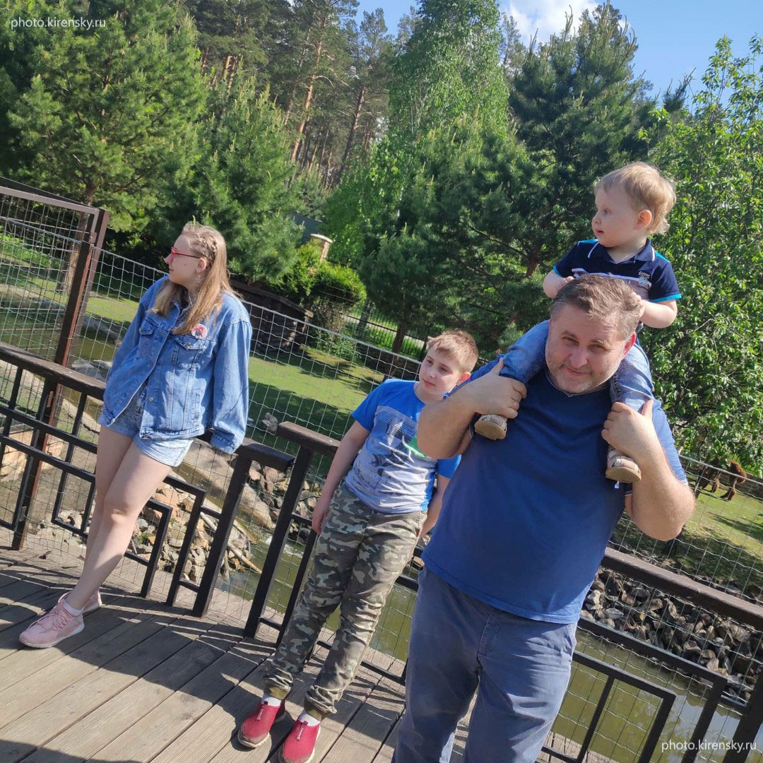 Батрак Андрей Петрович, младший научный сотрудник Института физики им. Л.В. Киренского Сибирского отделения Российской академии наук на прогулке с детьми. 2024год