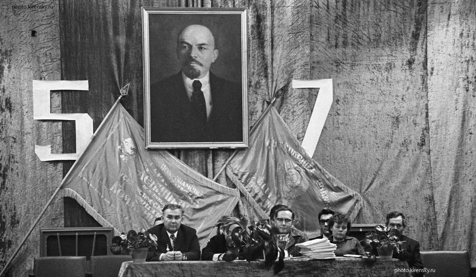 1974 год. На ученом Совете Института физики им. Л.В. Киренского Сибирского отделения Академии наук СССР, посвященном 57 годовщине Октябрьской революции, слева направо: директор института Иван Александрович Терсков, заместитель директора по научной работе Кирилл Сергеевич Александров, начальник отдела кадров института Анна Петровна Смолянинова.