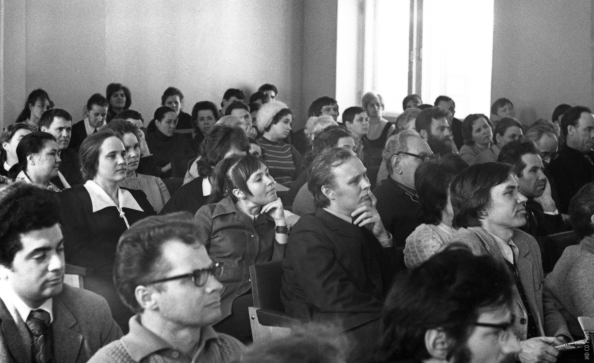 Конференц-зал Института физики им. Л.В. Киренского Сибирского отделения Академии наук СССР. Несколько лет в институте работал общеинститутский философский семинар, который был создан приказом по институту за № 179 от 13 ноября 1959 года. Фото 1973 года. Красноярск.