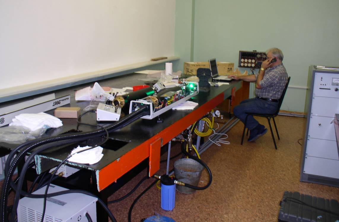 Сервисный инженер Spectra Physics Н. Буянов выполняет работы по запуску лазера для установки Horiba Jobin Yvon, 2007 г.