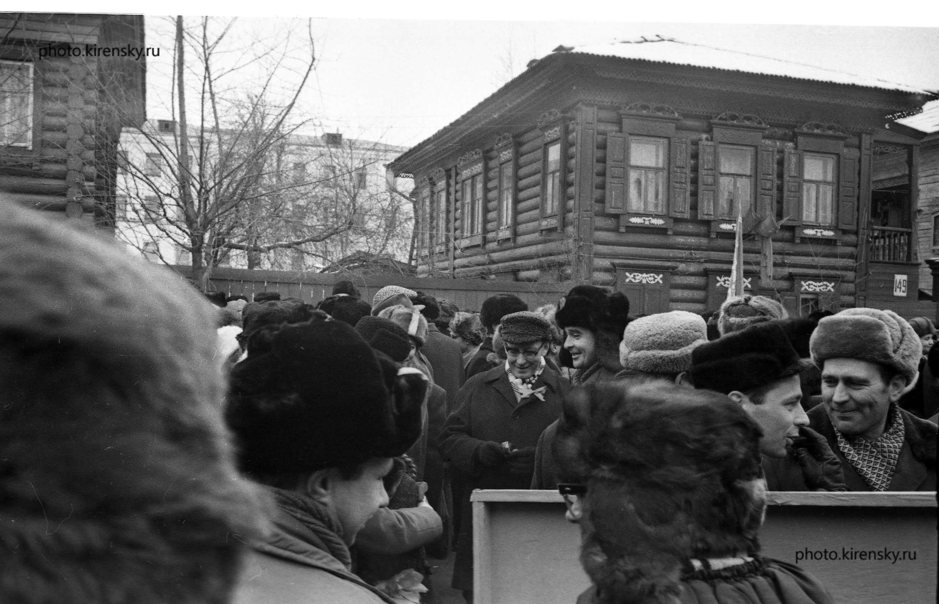 7 ноября 1972 года. Сотрудники Института физики им. Л.В. Киренского Сибирского отделения Академии наук СССР, участники демонстрации, посвященной октябрьской революции 1917 года. В центре: Александров К.С. (слева), Айзенберг Л.А. Справа на снимке – Петраковский Г.А. (слева) и Зеер Э.П. Красноярск.