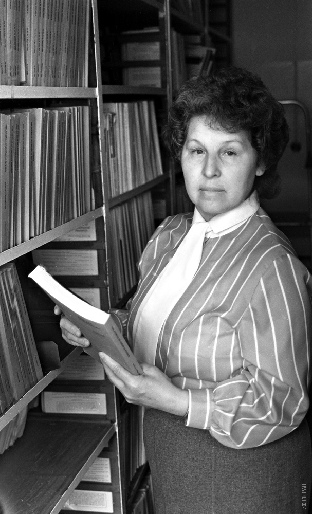 Андреева Раиса Афанасьевна, ведущий библиотекарь Института физики им. Л.В. Киренского Сибирского отделения Академии наук СССР (ИФ СО АН СССР). Фото 1984 года. Красноярск.