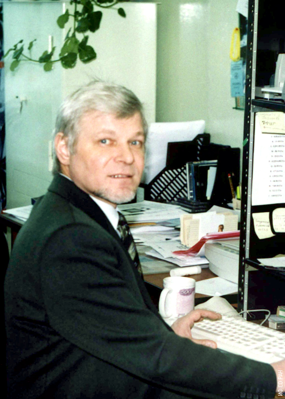 Профессор Беляев Б.А., заведующий лабораторией электродинамики и СВЧ электроники Института физики им. Л.В. Киренского Сибирского отделения Российской академии наук (ИФ СО РАН), Заслуженный изобретатель Российской Федерации. Под его руководством в лаборатории ведутся перспективные прикладные работы по созданию миниатюрных систем радиоэлектроники. Работы находятся на самом высоком мировом уровне. Датчики и устройства СВЧ-электроники широко использовались в радиолокации и спутниках связи. Применение их универсально. Фото 2004 года. Красноярск.