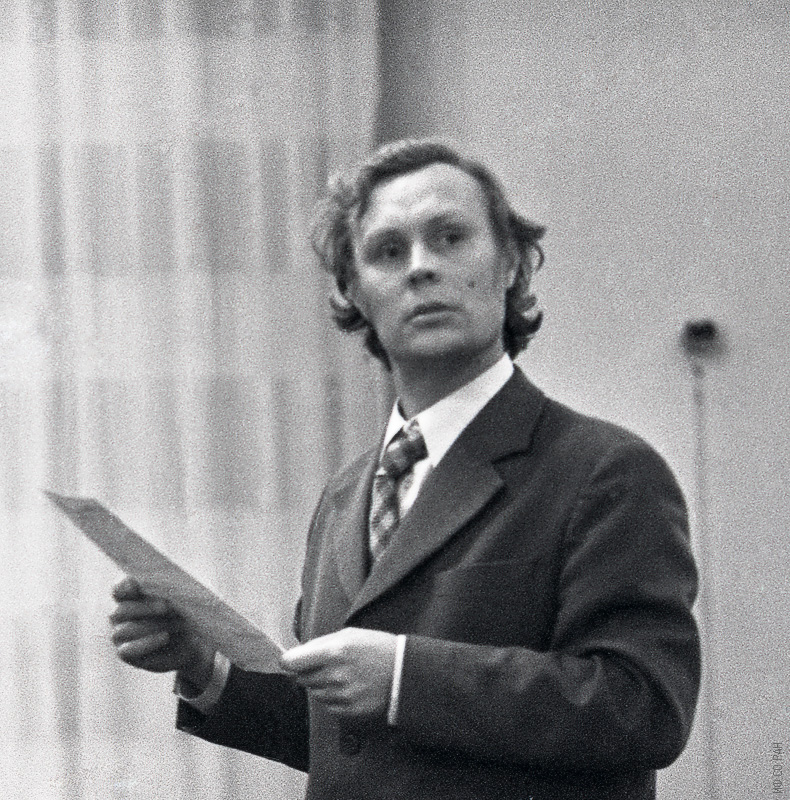 Хрусталев Б. П., заведующий лабораторией сильных магнитных полей Института физики им. Л.В. Киренского Сибирского отделения Академии наук СССР (ИФ СО АН СССР) . Снимок 1981 года. В этом году он был утвержден в должности заместителя директора института по научной работе. Красноярск.