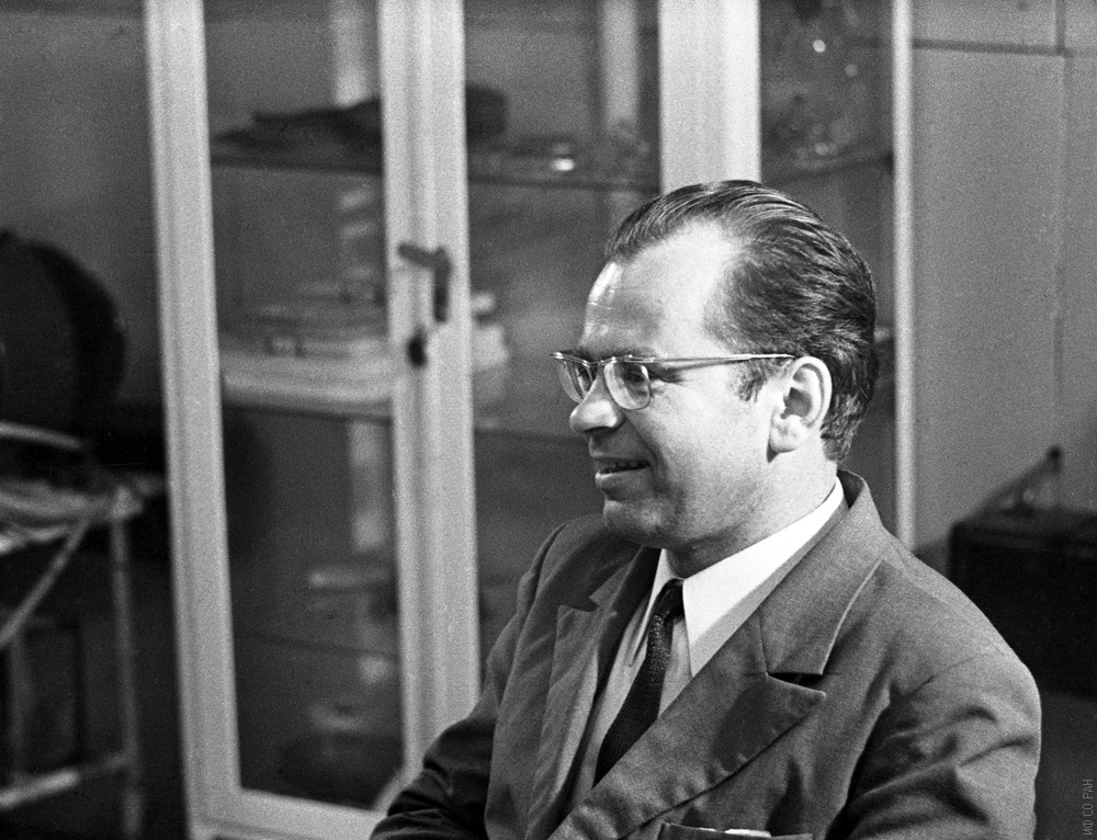 Ковров Б.Г., заведующий лабораторией моделирования и конструирования замкнутых систем Института физики им. Л.В. Киренского Сибирского отделения Академии наук СССР (ИФ СО АН СССР). Снимок 1973 года, после выхода участников эксперимента из установки «БИОС-3». Красноярск.