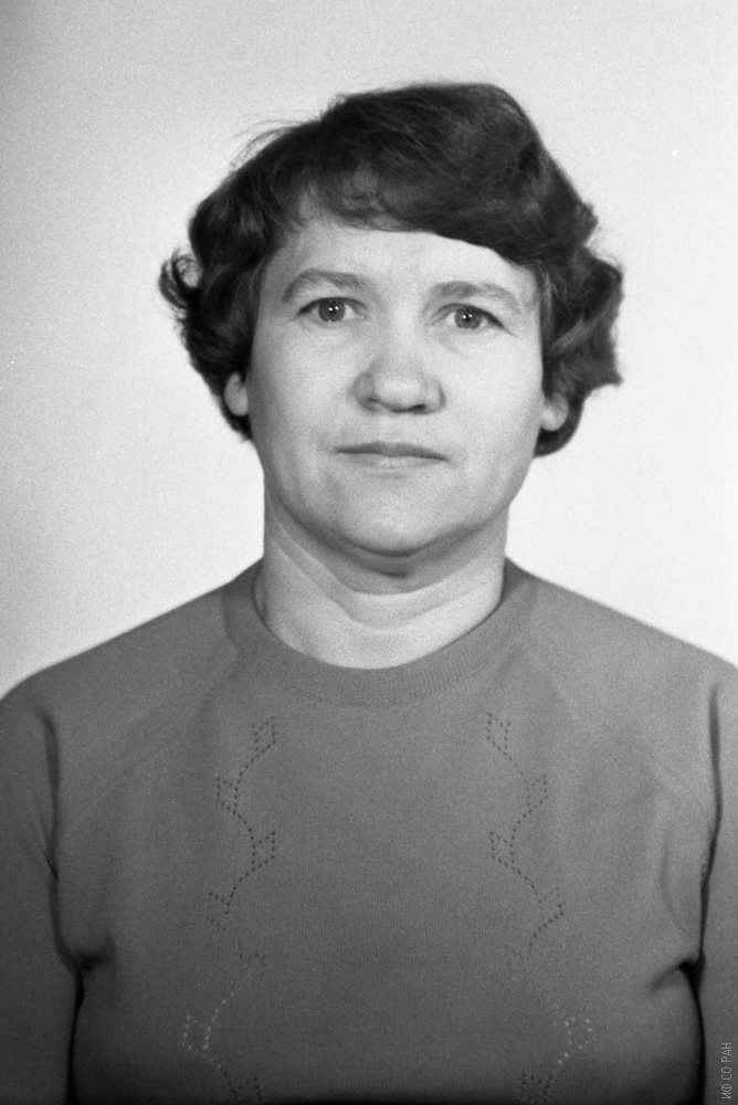 Носкова Валентина Федоровна (1939 -) образование среднее, работала гальваником в экспериментальных механических мастерских Института физики им. Л.В. Киренского Сибирского отделеник Академии наук СССР (ИФ СО АН СССР). Фото 1984 года.