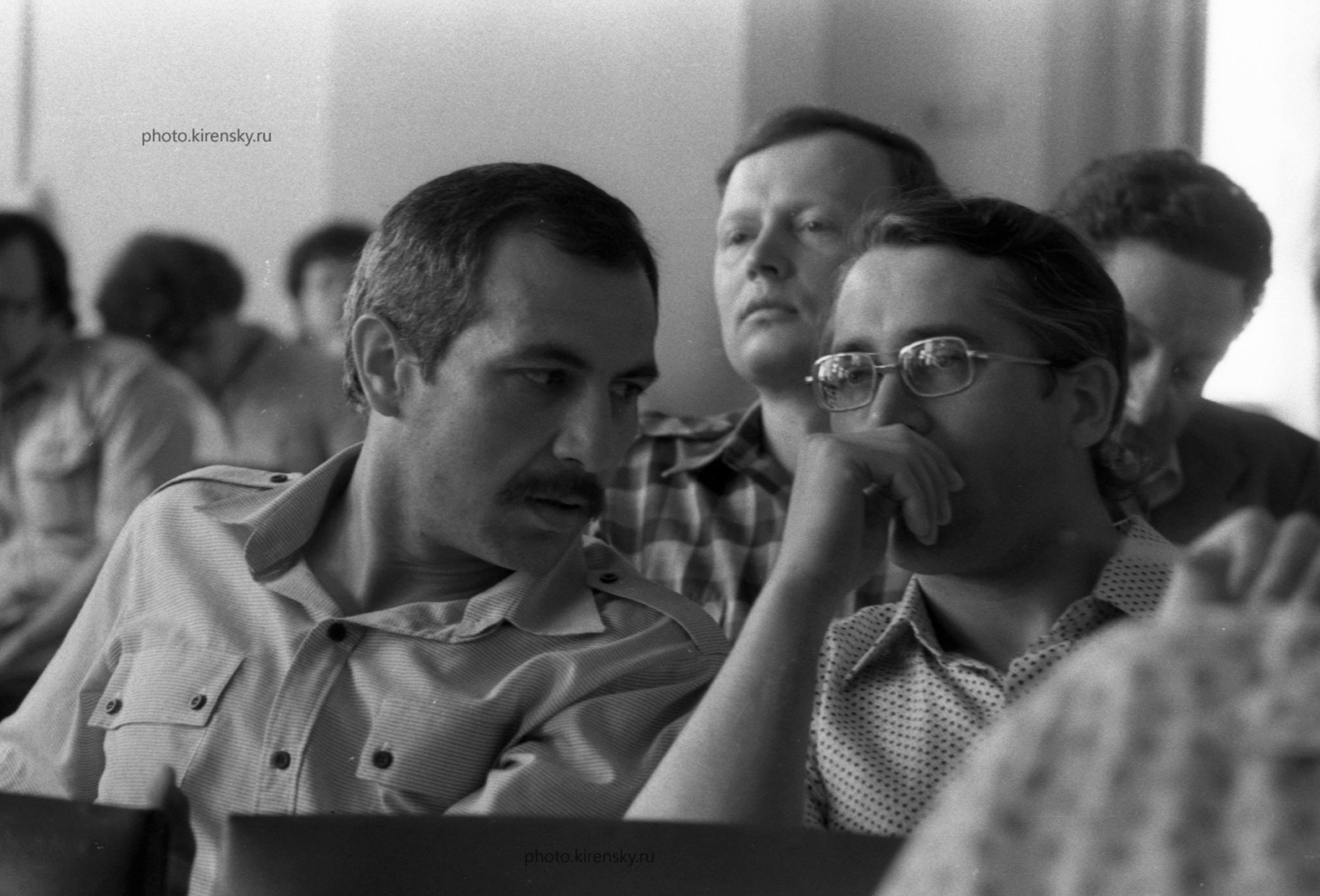 1978 год. В конференц-зале Института физики им. Л.В. Киренского Сибирского отделения Академии наук СССР на защите Овчинниковым С.Г. диссертации на соискание ученой степени кандидата физико-математических наук. В первом ряду: слева Исхаков Р.С. и Баранов А.М. Во втором ряду: слева Вальков В.В. и Лундин А.Г. Красноярск.