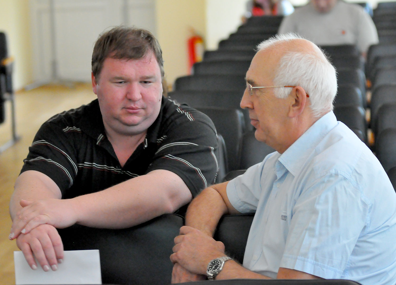 Варнаков С.Н., старший научный сотрудник лаборатории физики магнитных явлений (слева) и Овчинников С.Г., заведующий лабораторией, заместитель директора по научной работе Института физики им. Л.В. Киренского Сибирского отделения Российской академии наук, фото 2015 года. Красноярск.