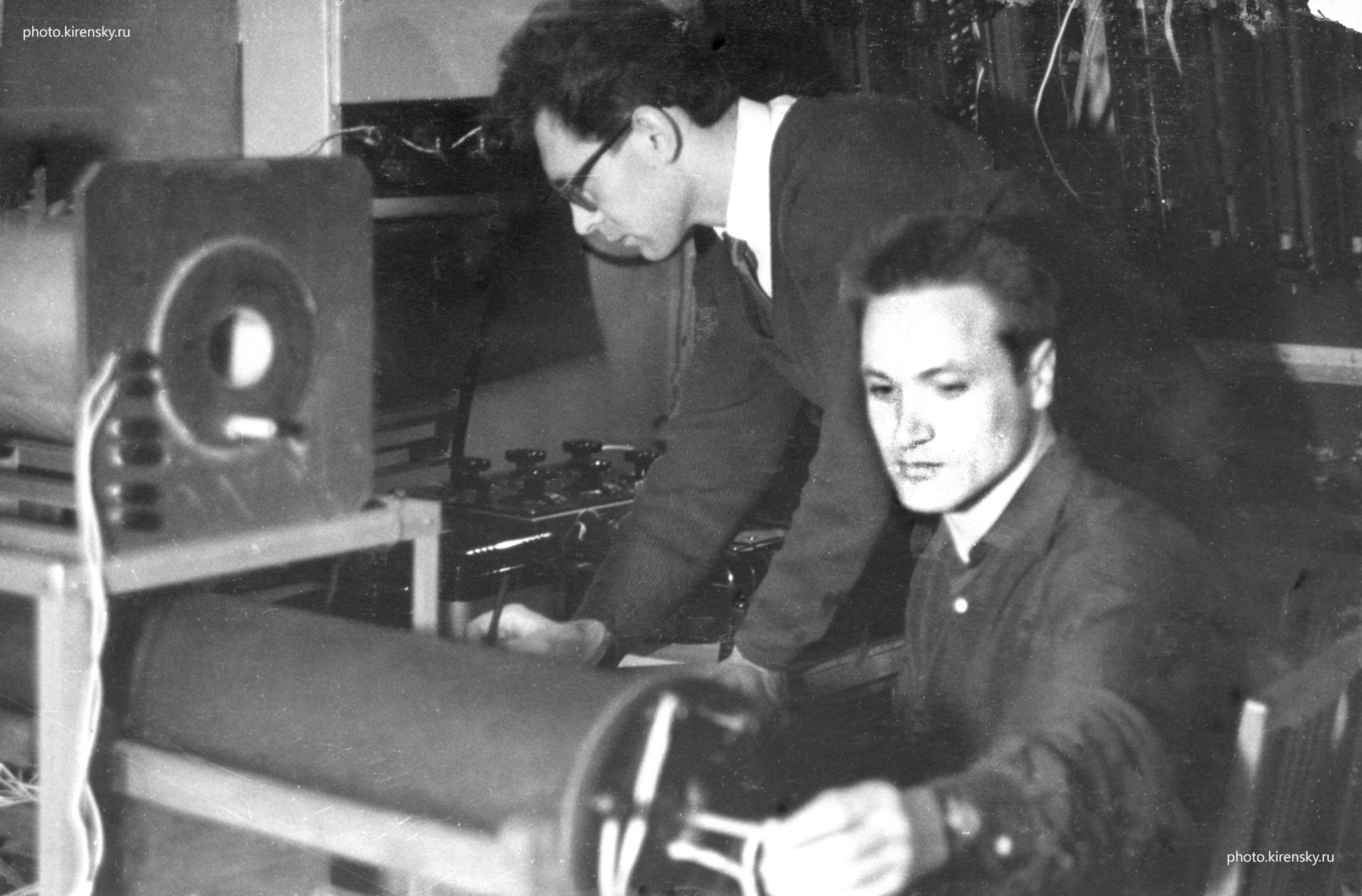1967 год. На снимке, Якубайлик Э.К. (слева), аспирант в лаборатории магнетизма горных пород и геофизики Института физики Сибирского отделения Академии наук СССР (ИФ СО АН СССР) (СО АН СССР с 1991 года СО РАН). Красноярск.
