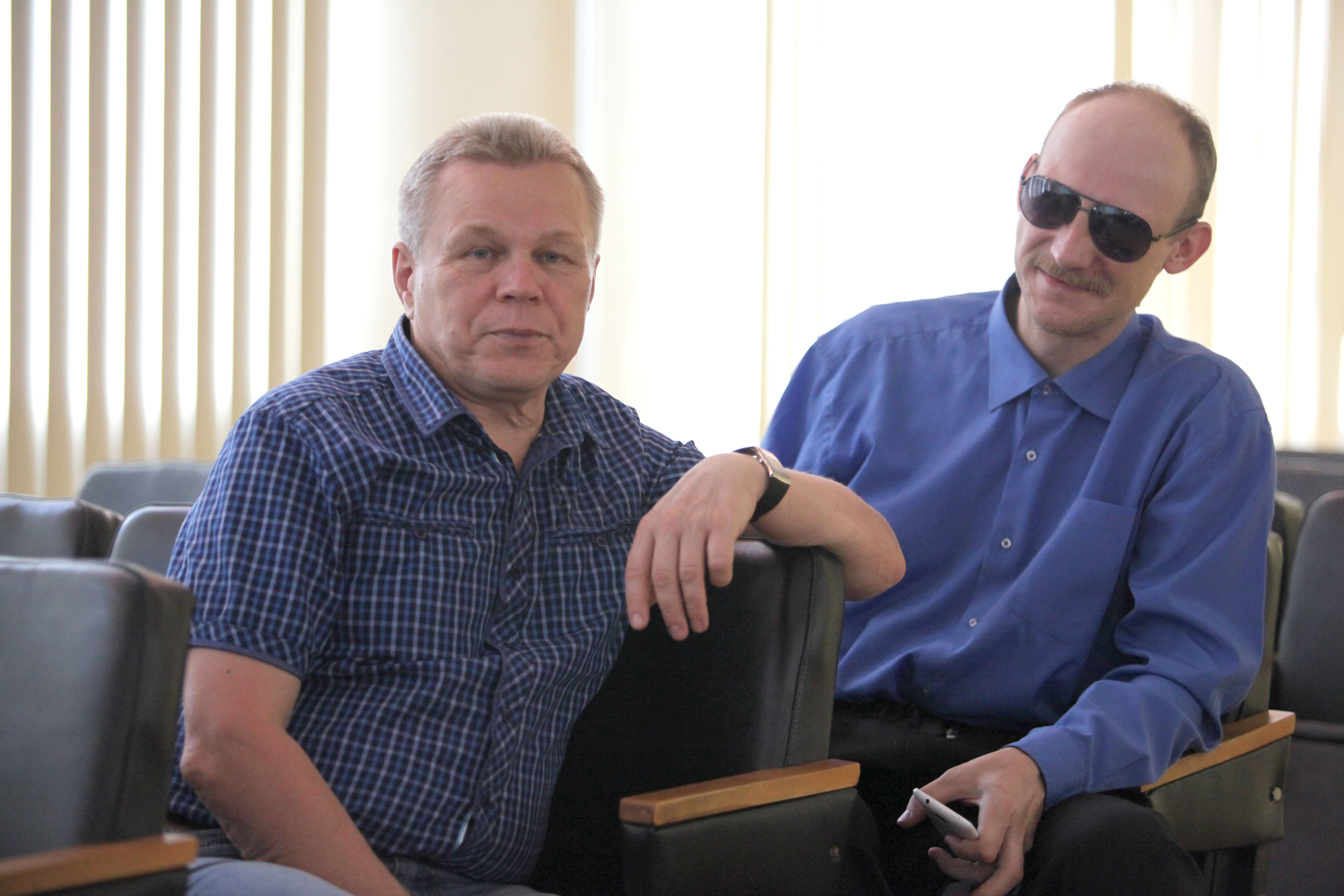 В.Я. Зырянов (слева) и И.В. Тимофеев, сотрудники Институте физики им. Л.В. Киренского Сибирского отделения Российской академии наук (ИФ СО РАН), на заседании ученого Совета по защитам диссертаций, фото 2015 года. Красноярск.