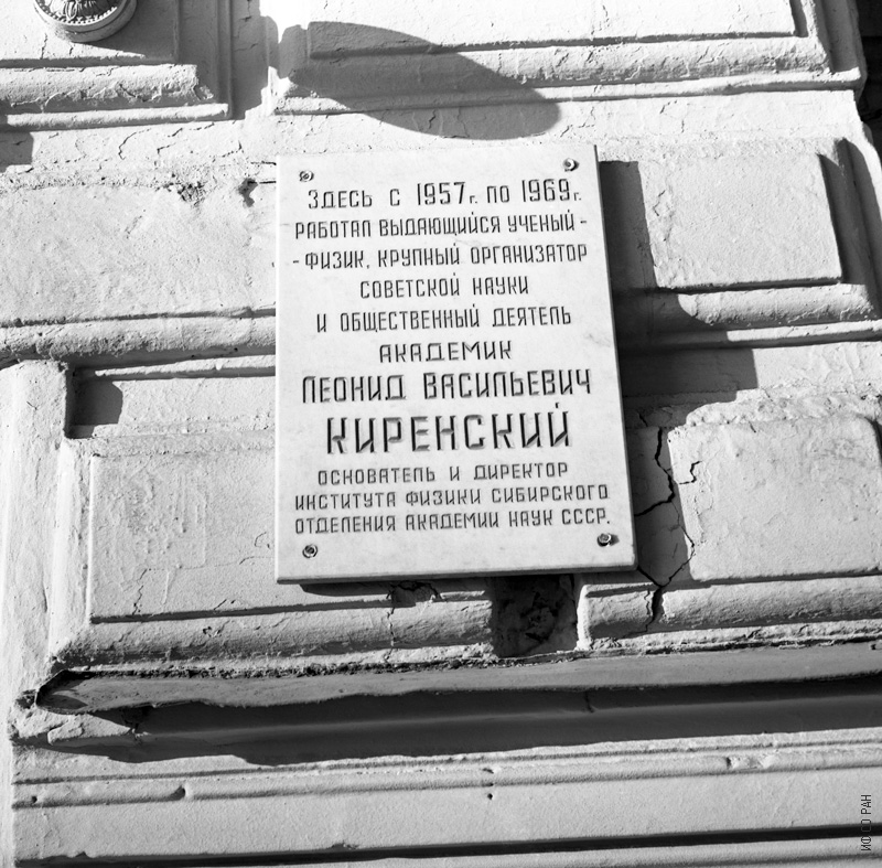 Мемориальная доска на первом здании Института физики по проспекту К. Маркса № 42 в Красноярске.