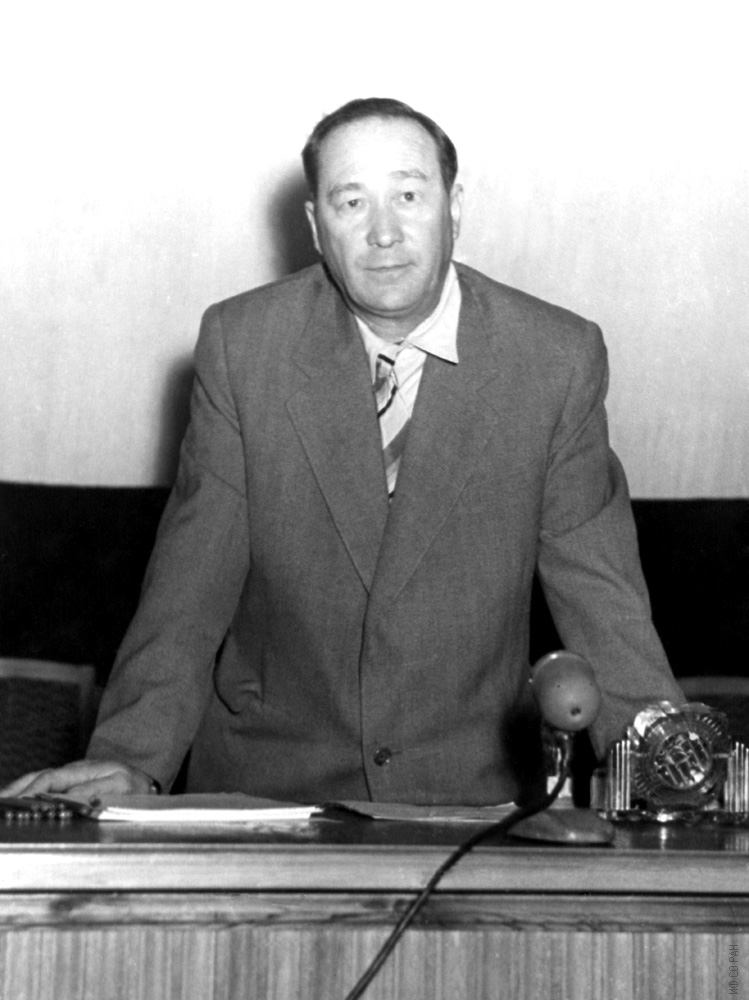 Академик Л.В. Киренский, организатор и первый директор Института физики Сибирского отделения Академии наук СССР (ИФ СО АН СССР), открывает Первый Всесоюзный симпозиум по физике магнитных пленок в Красноярске, подготовленный и проведенный Институтом физики в июле 1960 года.