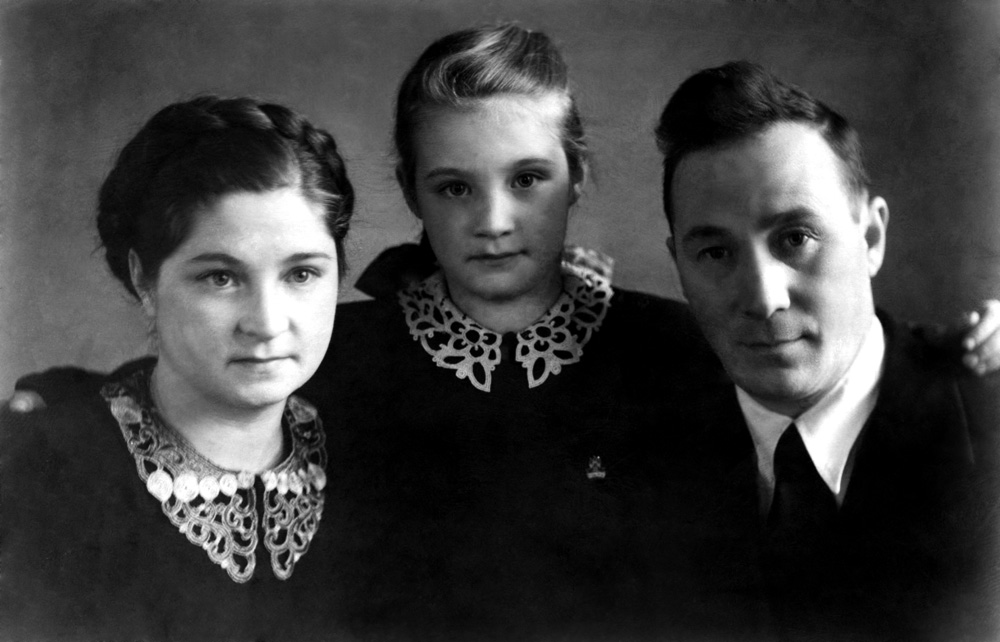 Академик Л.В. Киренский, организатор и первый директор Института физики Сибирского отделения Академии наук СССР (ИФ СО АН СССР), с супругой Зинапидой Яковлевной и дочерью Татьяной. 1949 год. Красноярск.