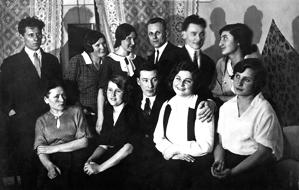 В общежитии Московского государственного университета (МГУ) на Стромынке. Академик Леонид Васильевич Киренский, организатор и первый директор Института физики Сибирского отделения Академии наук СССР (ИФ СО АН СССР) и Зинаида Яковлевна Киренская (сидят в центре) среди сокурсников. Снимок сделан 1937 году.