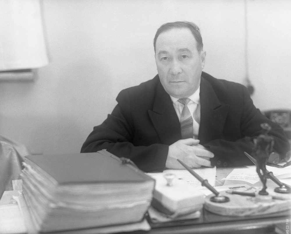 Л.В. Киренский, организатор и первый директор Института физики Сибирского отделения Академии наук СССР (ИФ СО АН СССР), в своем рабочем кабинете. Снимок 1966 года. Красноярск.