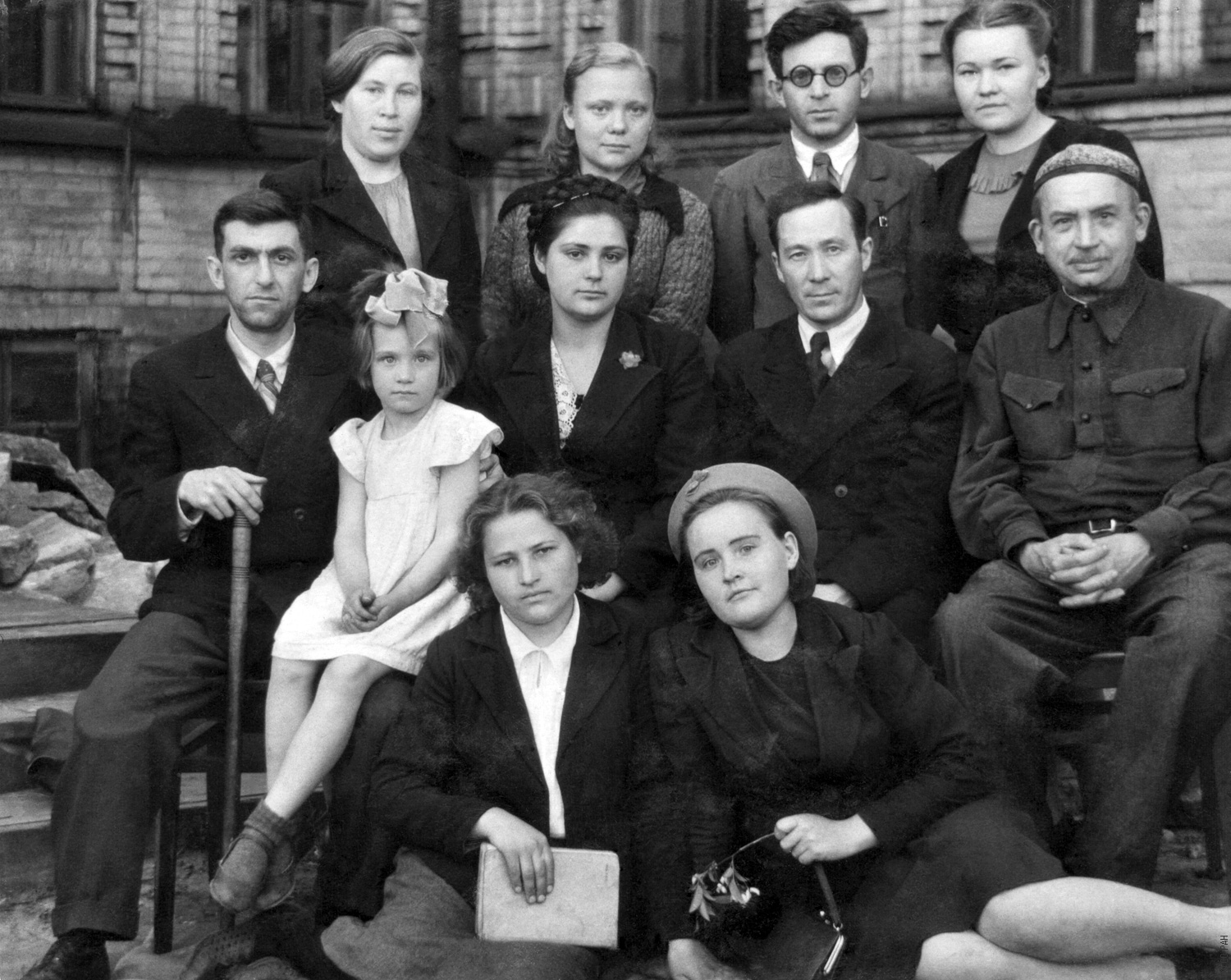 Киренский Л.В. (в среднем ряду, второй справа) с преподавателями и выпускниками Красноярского государственного педагогического института в годы Великой Отечественной войны (1941-1954 гг.).