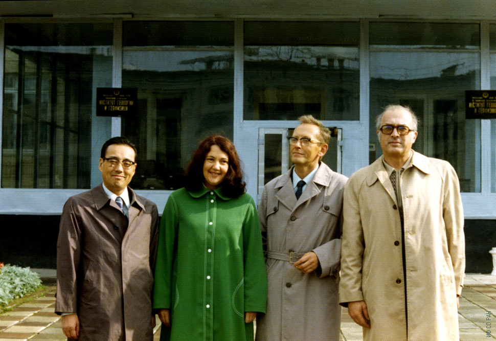 Александрова И. П. и Александров К. С. (в центре), директор Института физики им. Л.В. Киренского Сибирского отделения Академии наук СССР (ИФ СО АН СССР), на первом Советско-Японском симпозиуме по сегнетоэлектричеству в Новосибирске, 1976 год.