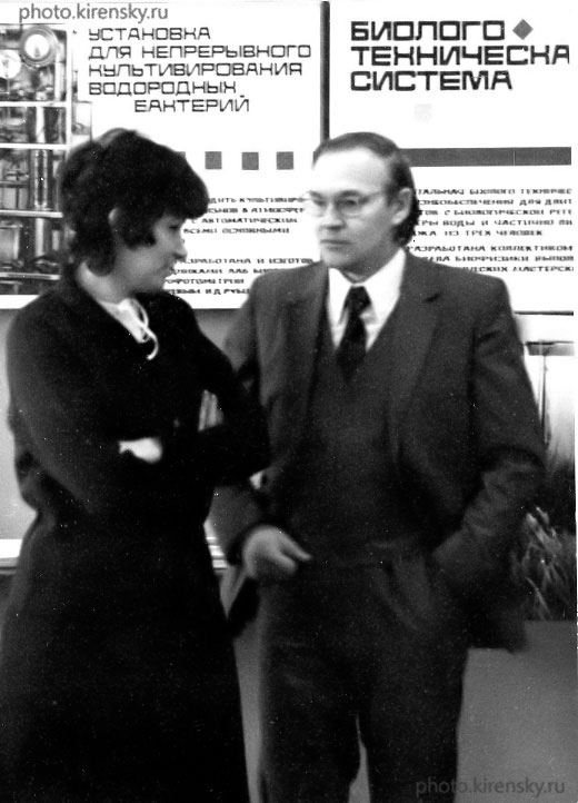 На выставке «Сибирский прибор-83» в Академгородке Новосибирска. Сотрудники Института физики им. Л.В. Киренского Сибирского отделения Академии наук СССР (слева направо): Черкасов Б.И, Бабаев В.А. Москвич Ю.Н, Александров К.С., Шабанов В.Ф., Миронов В.Л., Исаев А.С. – председатель Президиума Красноярского научного центра Сибирского отделения Академии наук СССР (КНЦ СО АН СССР), Чистяков Н.С., и Кузнецкий С.С., снимок 1983 года.