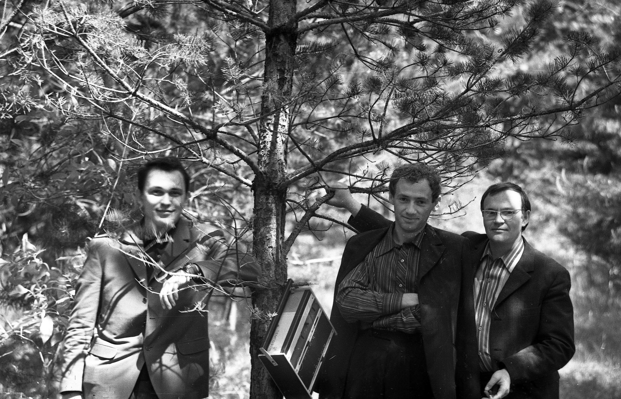 Петров М.И. (слева), Бабаев В.А. (крайний справа), сотрудники Института физики им. Л.В. Киренского Сибирского отделения Академии наук СССР (ИФ СО АН СССР). Снимок 1987 года в Академгородке Красноярска.