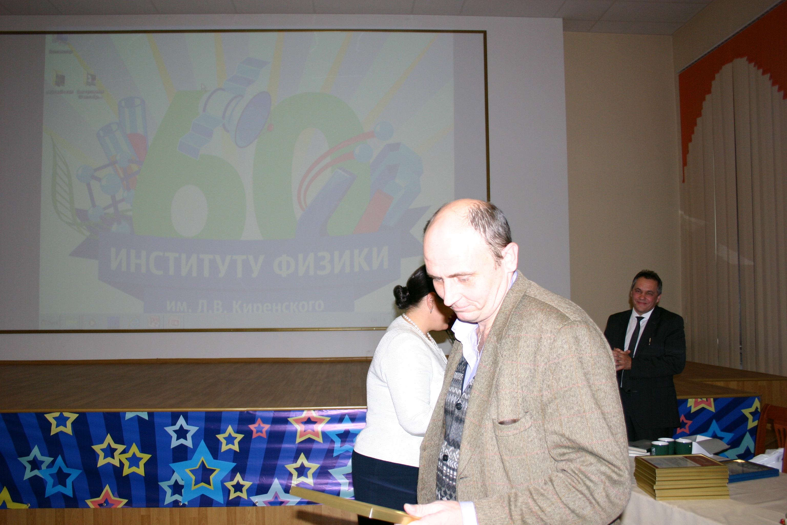 12 октября 2016 года. В конференц-зал Института физики им. Л.В. Киренского Сибирского отделения Российской академии наук (ИФ СО РАН) проходило расширенное заседание ученого Совета, посвященное 60-летию образования института с участием сотрудников института, представителей администраций города и края, директоров предприятий-партнеров, директоров подразделений ФИЦ КНЦ СО РАН (Федеральный исследовательский центр «Красноярский научный центр Сибирского отделения Российской академии наук») и других гостей. Дмитрию Александровичу Балаеву, заведующему лабораторией резонансных свойств магнитоупорядоченных веществ института, вручено Благодарственное письмо Губернатора Красноярского края.