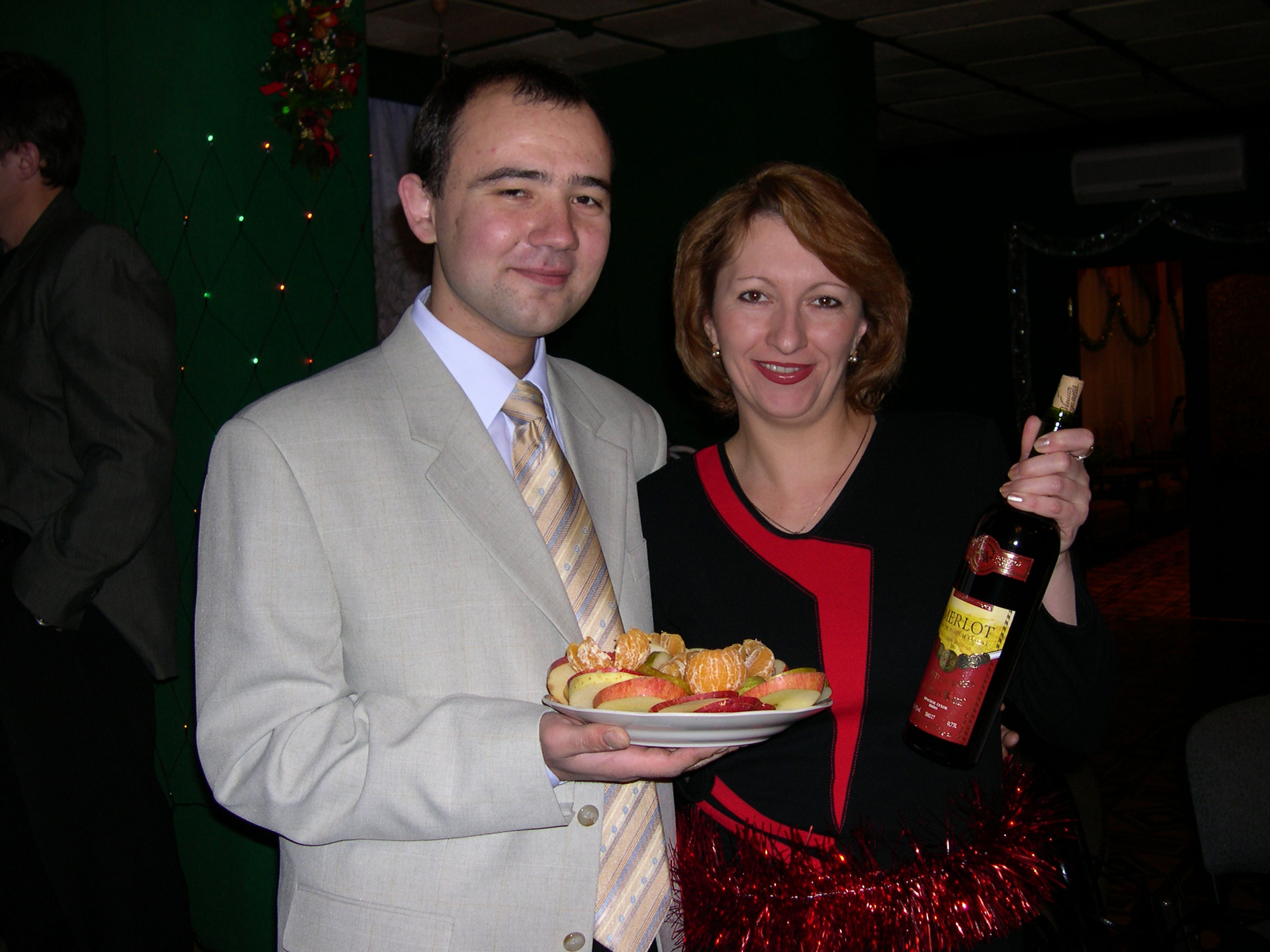 Декабрь 2005 г. Дом учёных, Christmas Party. Сотрудники Института физики им. Л.В. Киренского Сибирского отделения РАН - Сергей Попков, сотрудник лаборатории сильных магнитных полей, Елена Бондарева, помощник директора института. Красноярск Академгородок.