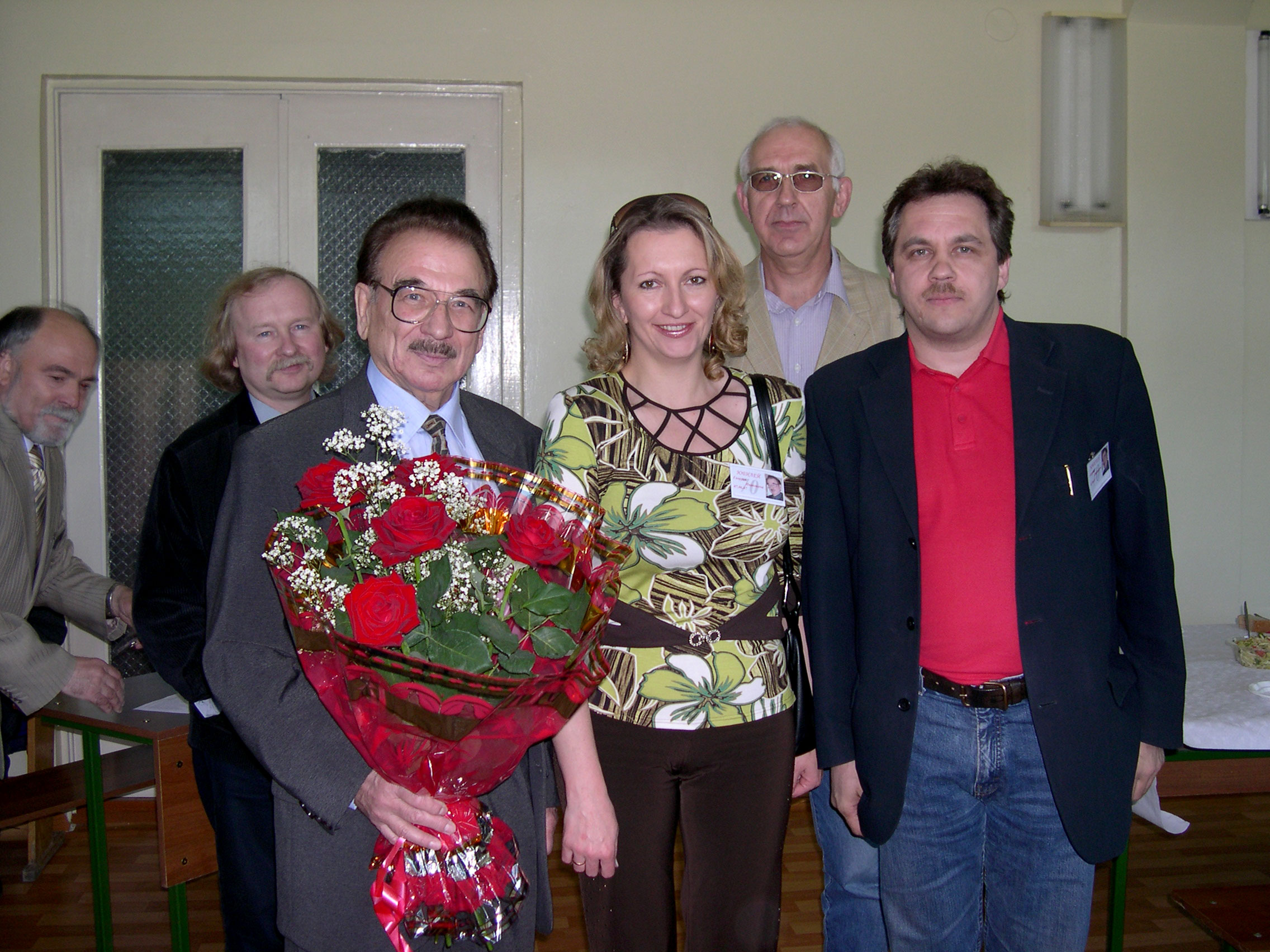 7 июня 2007 года. Конференц-зал технологического корпуса Института физики им. Л.В. Киренского Сибирского отделения Российской академии наук. Юбилей Георгия Ивановича Фролова. Фото на память. Слева направо: Андреев А.П., друг Фролова, Втюрин А.Н. заместитель директора по научной работе, Фрполов Г.И., ведуший научный сотрудник лаборатории физики магнитных плёнок, Бондарева Е.В., помощник директора института, Овчинников С.Г., заместитель директора по научной работе, Волков Н.В., заместитель директора по научной работе института. Красноярск.