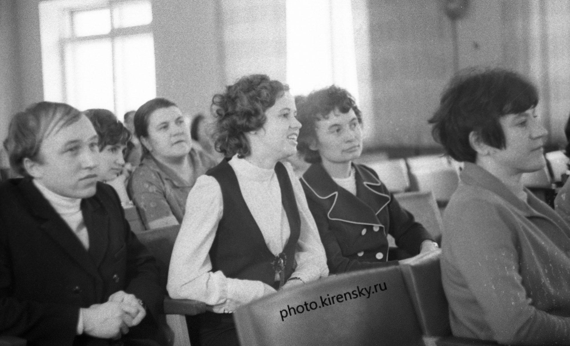 Март 1974 года. В актовом зале Института физики им. Л.В. Киренского Сибирского отделения Академии наук СССР (ИФ СО АН СССР) состоялось торжественное заседание сотрудников института накануне праздника 8 марта – Международного женского дня. Во втором ряду: Дрокина Т.В. (слева) Чеканова Л.А. В третьем ряду: Бетенькова А.Я (слева) и Зырянова Н.П. Красноярск