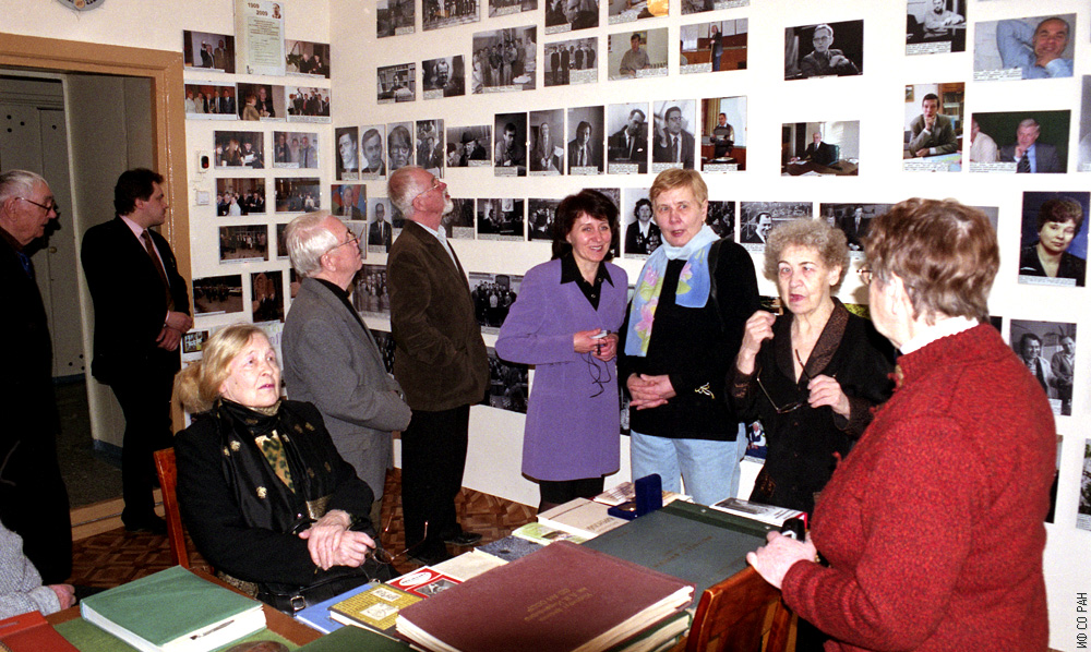 8 апреля 1999 года состоялись традиционные научные чтения памяти академика Л.В. Киренского, организатора и первого директора Института физики им. Л.В. Киренского Сибирского отделения Российской академии наук (ИФ СО РАН). В перерыве участники чтений рассматривают выставку кристаллов, выращенных в лаборатории магнитных материалов Института физики (заведующий лабораторией Безматерных Л.Н.). Слева направо: Лисовский Г.М., заведующий лабораторией управляемого биосинтеза Института биофизики СО РАН; Гладышев М.И., заместитель директора по научной работе Института биофизики СО РАН; профессор Эдельман И.С., Институт физики СО РАН; Болсуновский А.Я., заведующий лабораторией радиоэкологии Института биофизики СО РАН; Исаева Т.Н., Институт физики СО РАН; Гудим И.А., Институт физики СО РАН. Красноярск.