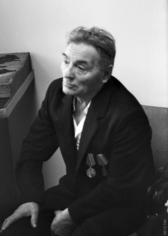 Федоров Анатолий Андрианович (1909-1992) работал в Институте физики им. Л.В. Киренского Сибирского отеления Академии наук СССР (ИФ СО АН СССР) с 1972 по 1990 год токарем в экспериментальных механических мастерских, участник Великой Отечественной войны 1941-1945 годов, фото 1984 года.