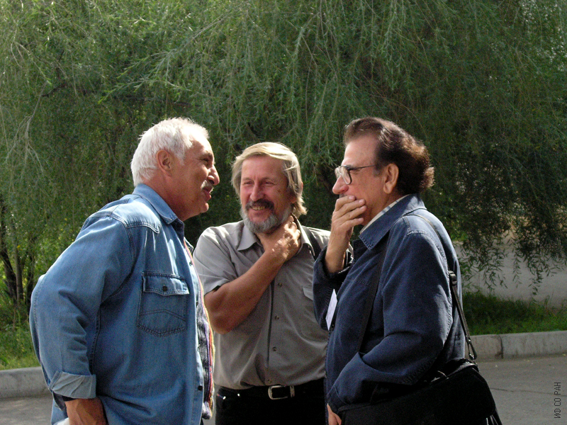 Сотрудники Института физики им. Л.В. Киренского Сибирского отделения Российской академии наук (ИФ СО РАН), слева направо: Исхаков Р. С., Жигалов В.С., Фролов Г. И. участники конференции "Магнитные материалы и магнитные технологии", август 2004 года. Иркутск.